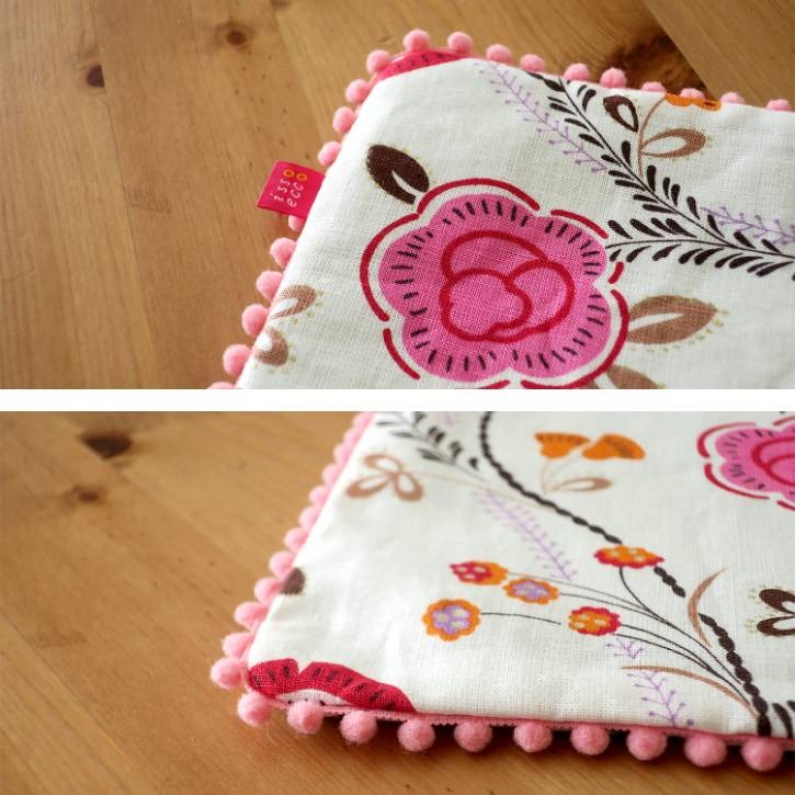 ポンポンのカラーはそれぞれの生地に合わせてて配色しています。